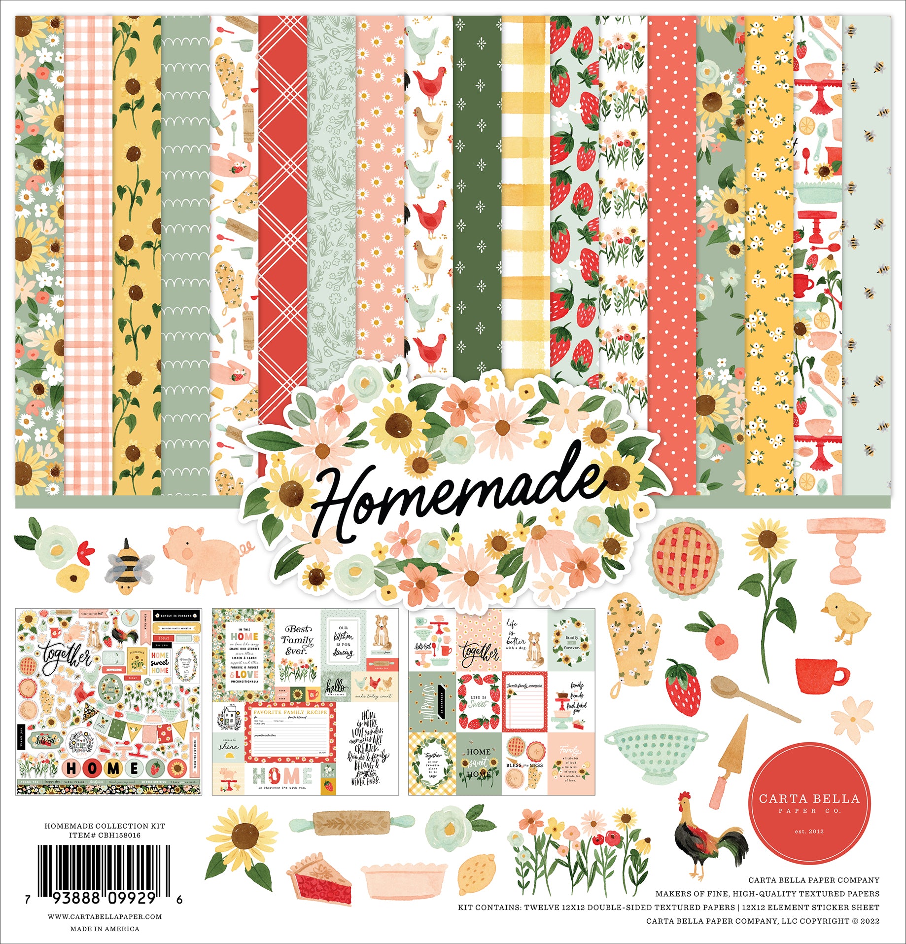 (12) 12 x 12 double sided acid free cardstock and (1) 12 x 12 self adhesive sticker sheet.